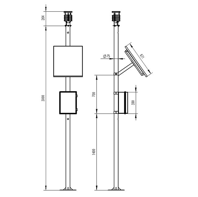 5、兩米碳鋼支架,頂部無(wú)需法蘭盤可直接套接傳感器
